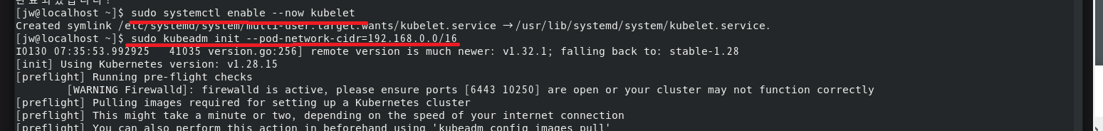 sudo kubeadm init --pod-network-cidr=192.168.0.0/16