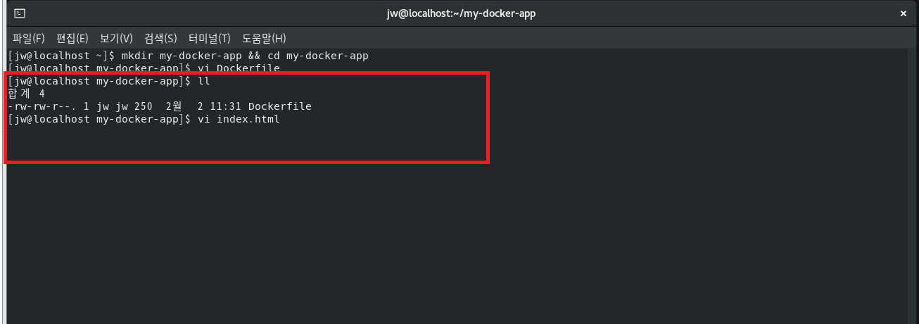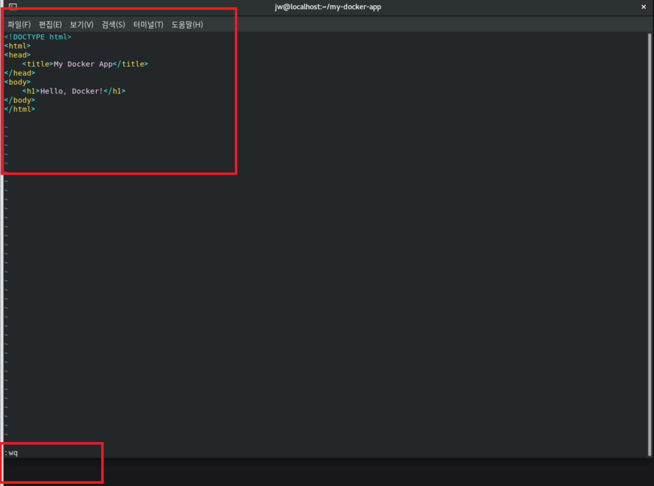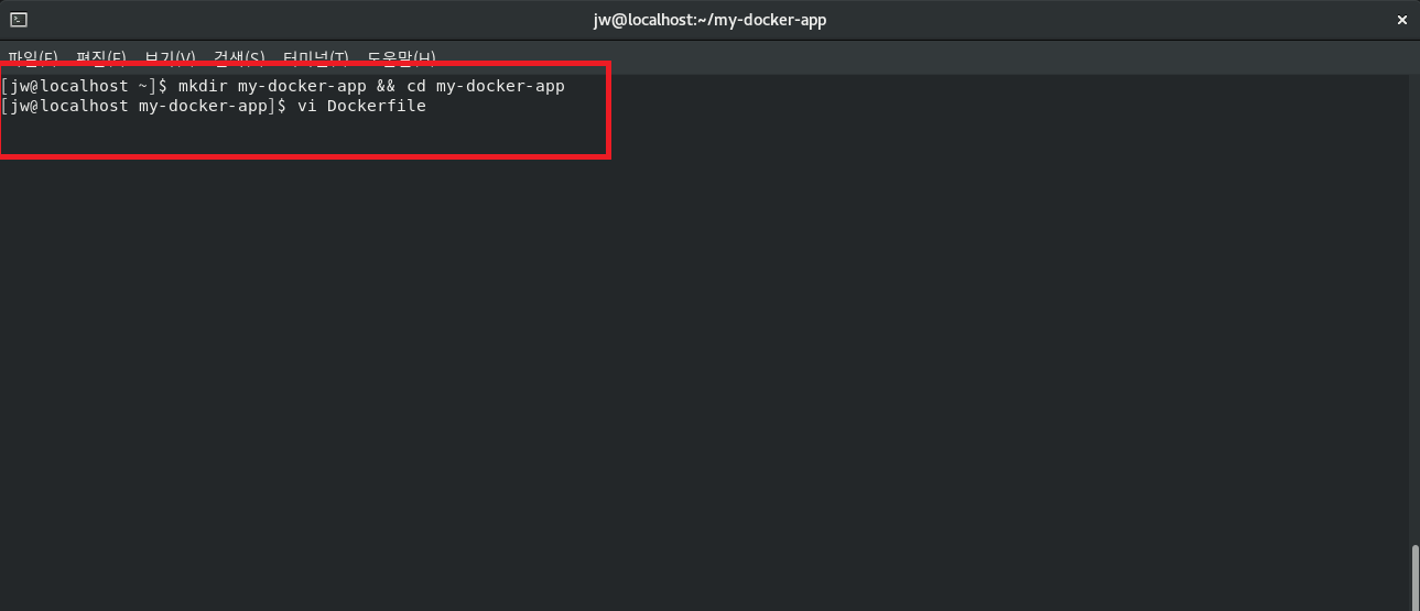 생성한 Dockerfile 내에 위의 내용 작성후 :wq로 저장
