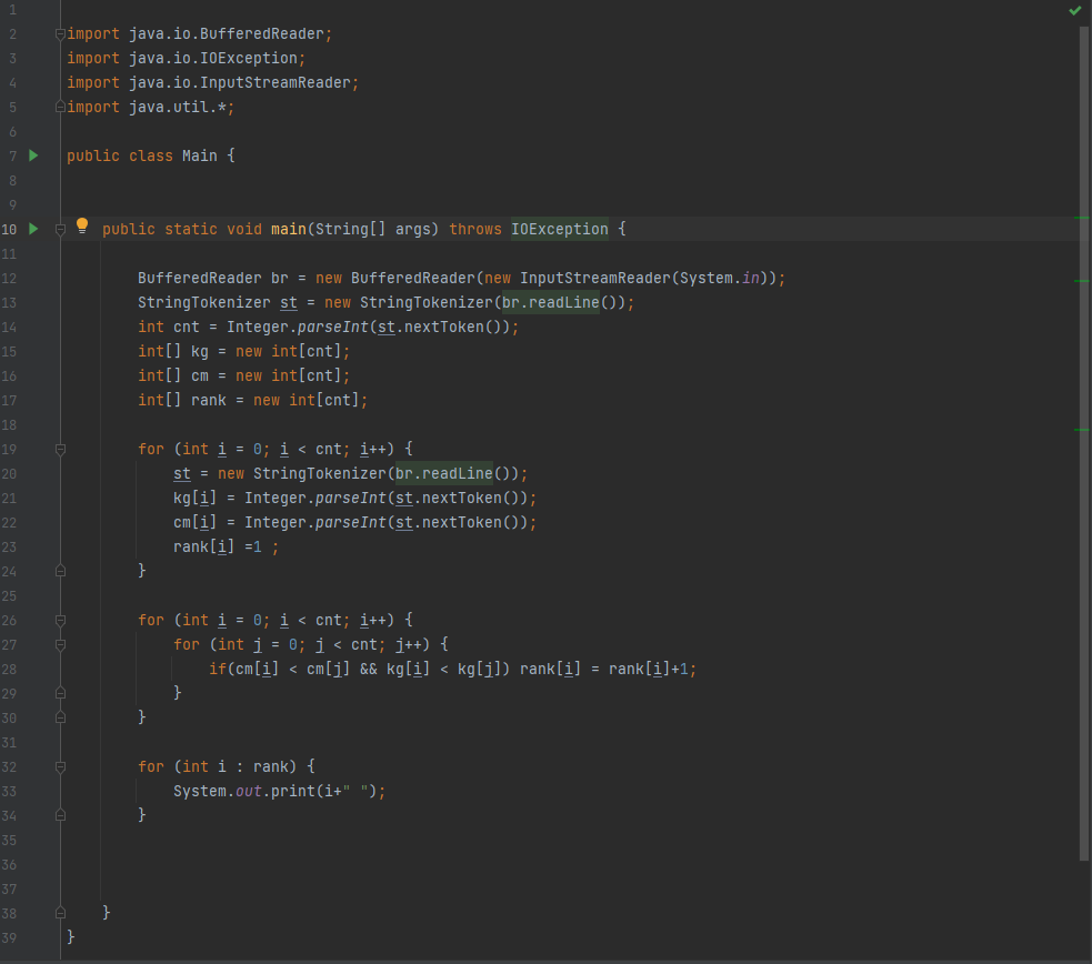 덩치 순으로 랭크를 매기는 문제였다.