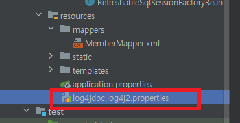4. application.properties가 있는 위치에 log4jdbc.log4j2.properties라는 이름의 파일을 하나 생성합니다.