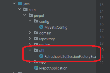 1. 첫번째로 적당한 위치에 RefreshableSqlSessionFactoryBean.java 파일을 만들어줍니다.